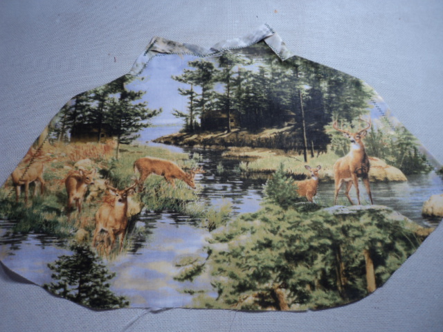 W9 Deer taking a drink from a stream close to cabins in the background.When lit as a Ti-Pi night light you see the sunlight coming through the trees, onto cabins. really nice view.